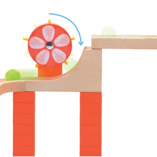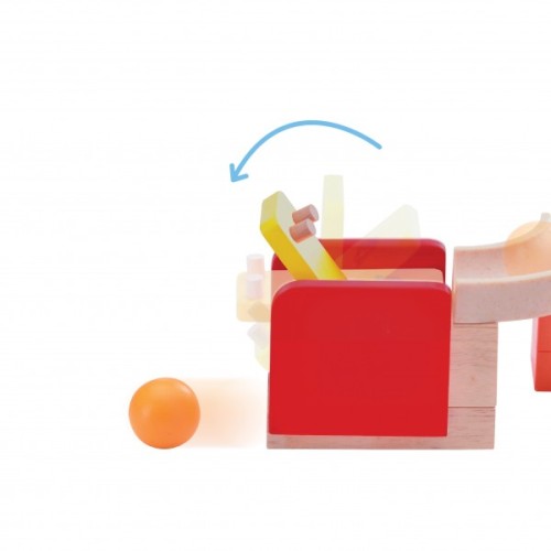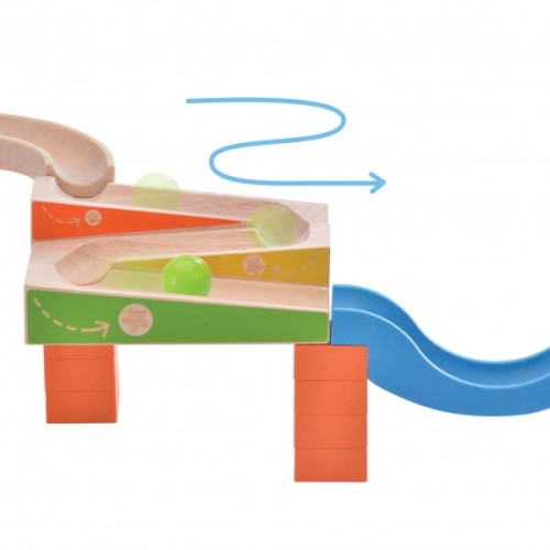 Join the wooden blocks together to create a sturdy ball run with special tricks along the way.