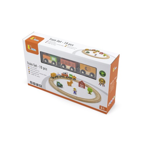 The animals can be put on a train or set up on the farmyard. A great toy that helps promote coordination, fine motor skills and imaginative play.