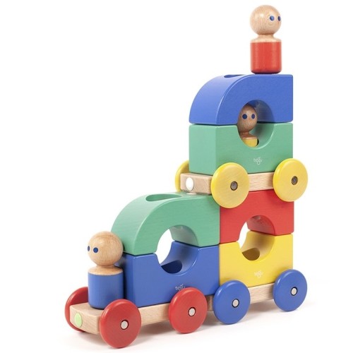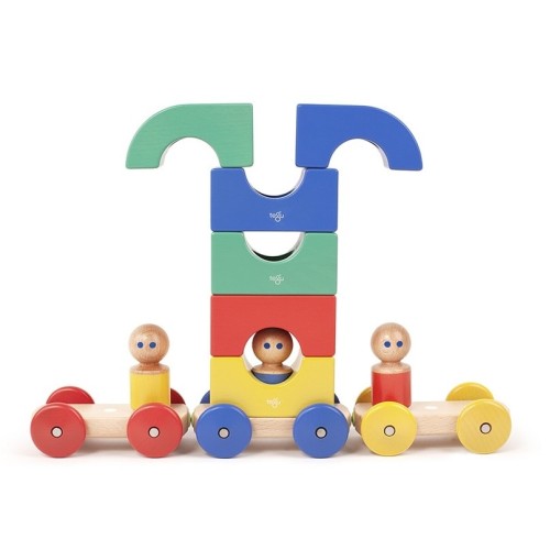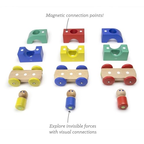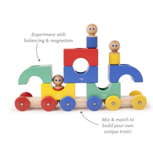 Each car contains 3 magnetically inter-changeable parts - kids can sort and stack the pieces anyway they like! The magnetic characters love to ride on the tram or play on their own.