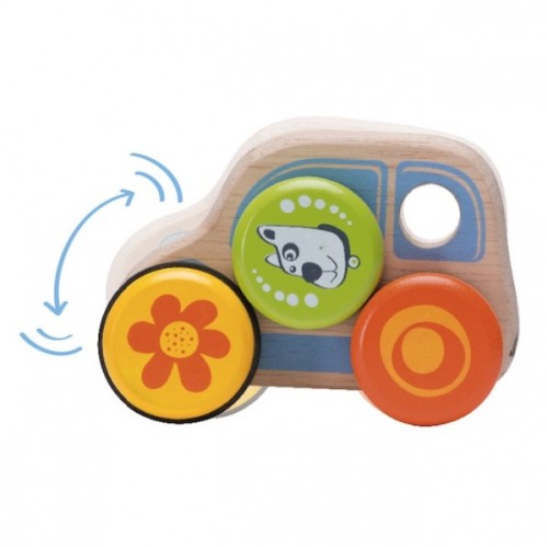 Enjoyable hand-size wooden Puppy Car that promotes hand-eye coordination along with hands muscles, the lovely character and bright colours attracts children attention and concentration on the toy.