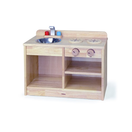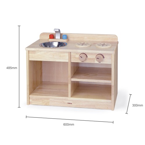 This kitchen is made of quality rubber wood and comes with a natural finish.