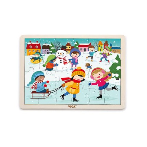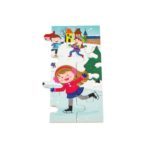 Four Seasons puzzles feature 24 interlocking pieces for each puzzle with different season themes, showing children enjoying different seasonal activities.