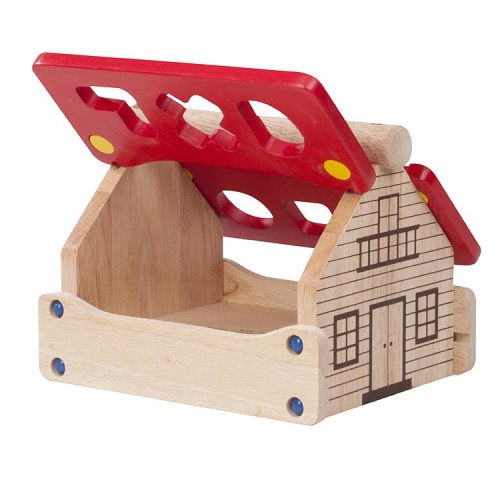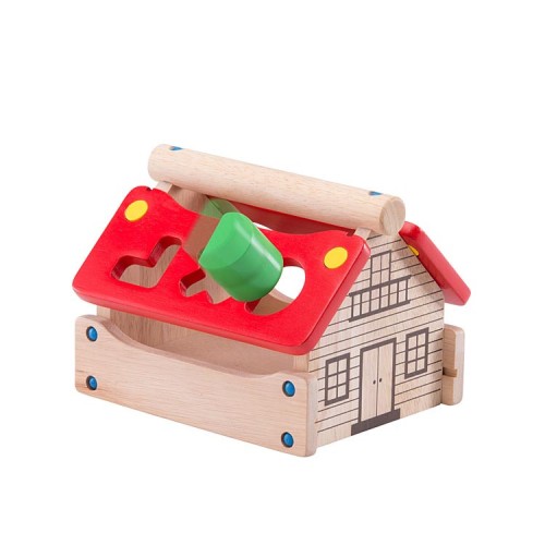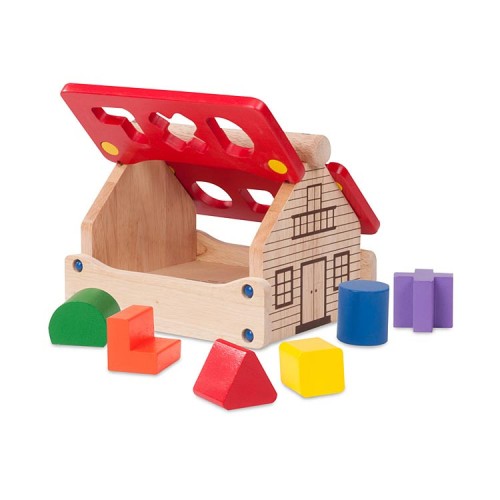 The children will love posting the 6 coloured shapes into the different geometric shapes in the roof.