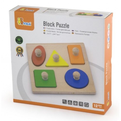 Solid Block Puzzle with base made of high quality beech wood and strong wooden knobs. Extra-large wooden knobs for little children to grasp easily.