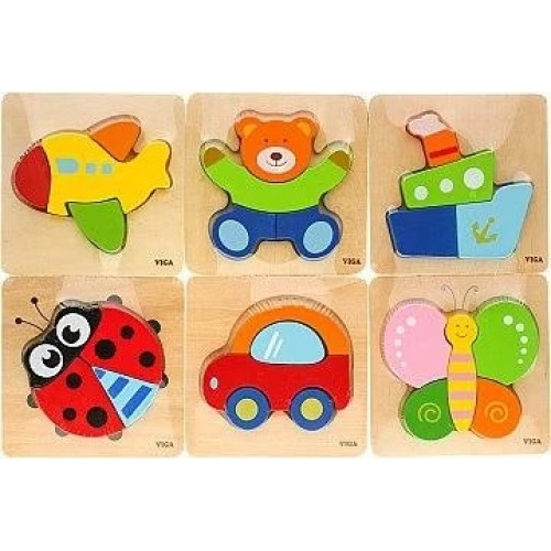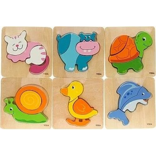 A small number of elements, simple shapes, pleasant colours and cute pictures will attract small restless and help you quickly master the skills of assembling puzzles.