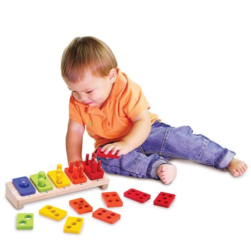 Simulates motor and hand-eye skills and helps teach shape/colour recognition and counting.
