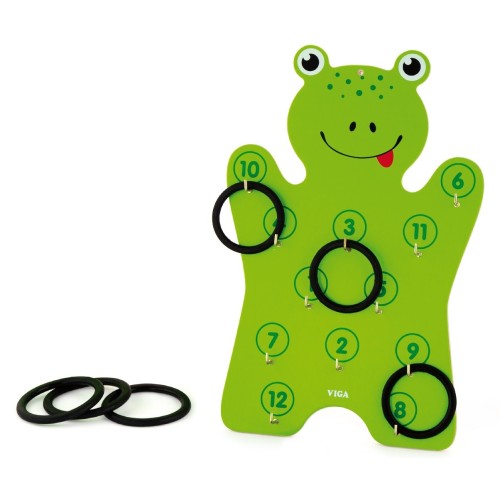 This product includes a cute frog shape board and 6 rings.