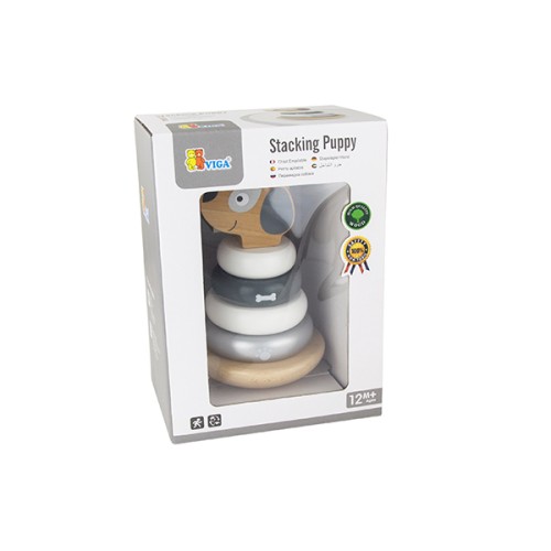This stacking puppy gently rocks, easily stacks, and encourages shape recognition and manual dexterity.