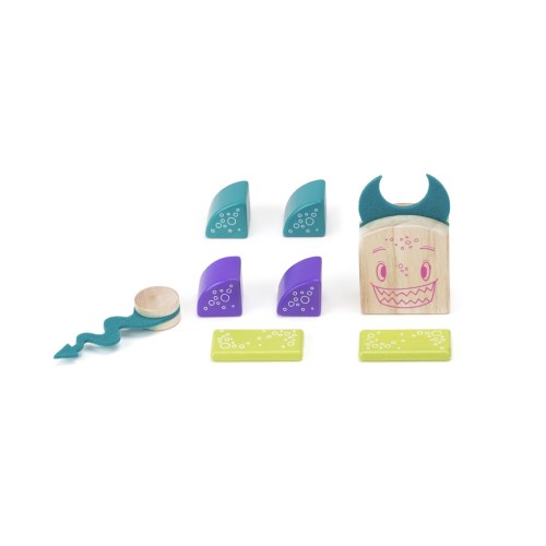 Includes 8 pieces in 4 shapes; 2 Short Planks, 4 Monster Horns, 1 Pip Horso, 1 Pip Tail