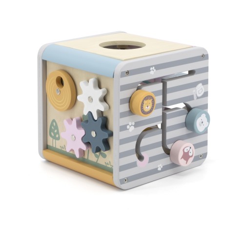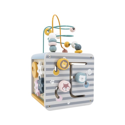 Part of the polar bear themed collection, this delicate activity toy comes with 5 different functions, including wire beads, track maze, gear spinning and counting numbers.