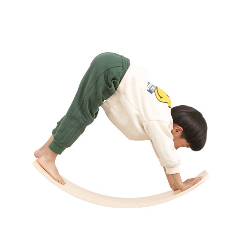 Multi-use curve board helps develop balance, stimulate vestibular system, and gain body awareness.