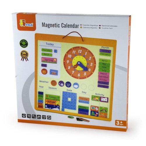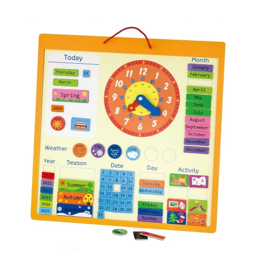 Includes 75 magnetic pieces for children to learn about time, dates, days, months, seasons, years, weather and activities.