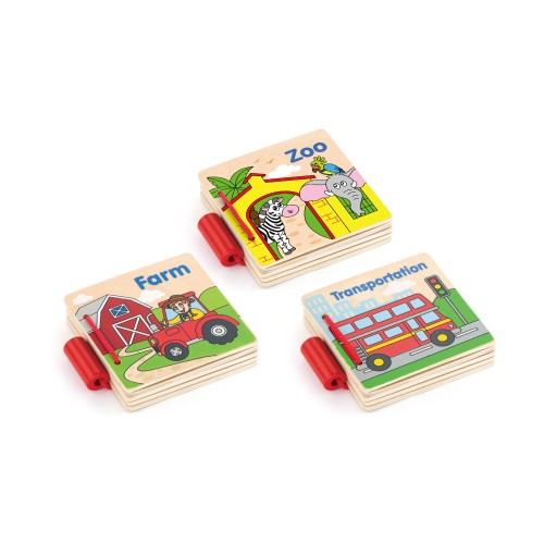 These wonderful first books are silk screen printed, and made of natural wood, 3 different books in the range include Transporation, Farm and Zoo. Set of 3