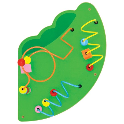 A great multi-functional wall toy, includes wire beads, magnetic beads, xylophone, castanet, mirror, bead travel, turning gear and tracking blocks.