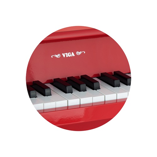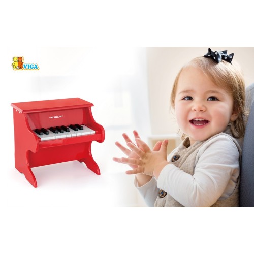 Beautifully finished wooden piano in classic red. 18 keys in a single octave.