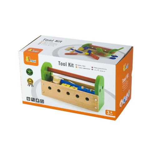 This tool kit contains all the necessary tools plus nuts and bolts, panels with holes and pins in 4 basic colours. Learn different tools and develop skills of turning, hitting and matching.