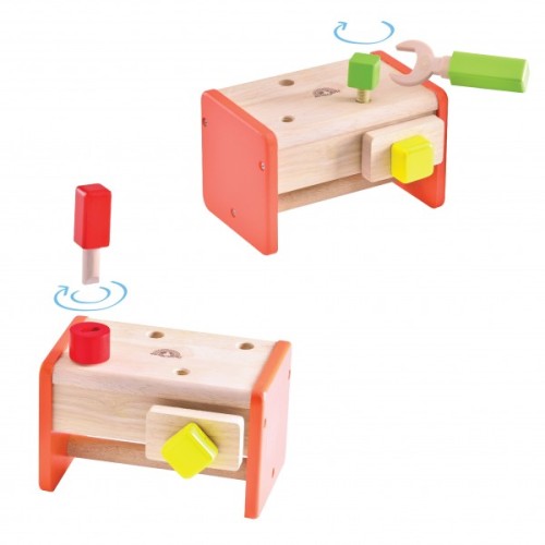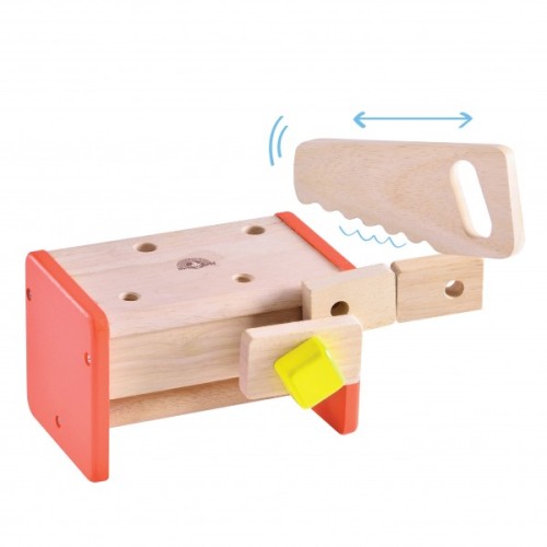 Play and practice using the included tools; a saw, screwdriver, wrench, hammer, bolts, and other accessories.