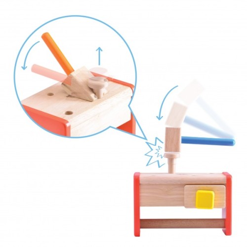 When flipped over the work bench will become a handy tool box for storage after finished playing.