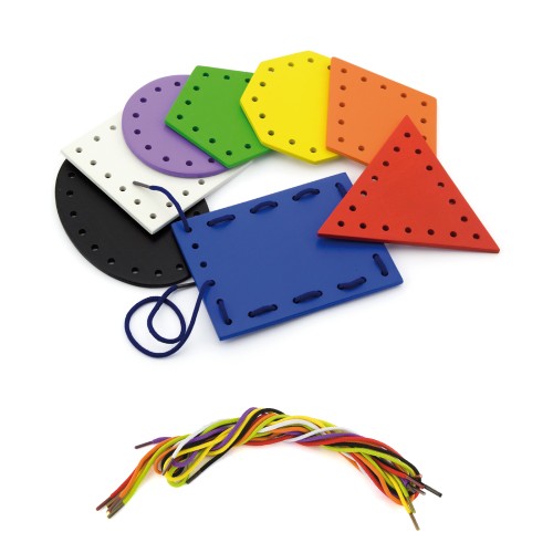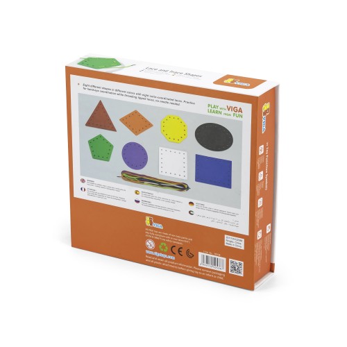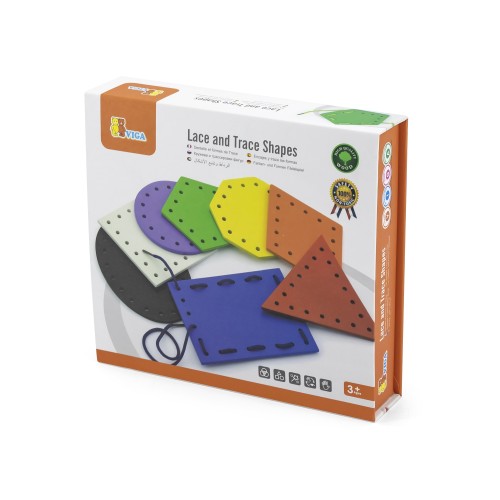 A game that improves hand-eye coordination of the child. The child is able to pull the laces through the wooden shapes for development of cognitive skills.