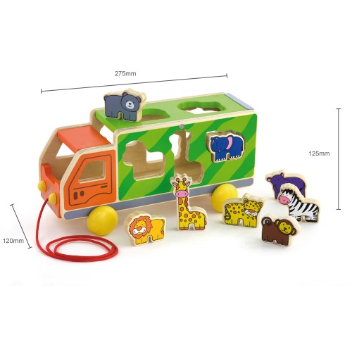 Double value to have Pull Along Truck and Shape Sorter in one toy.