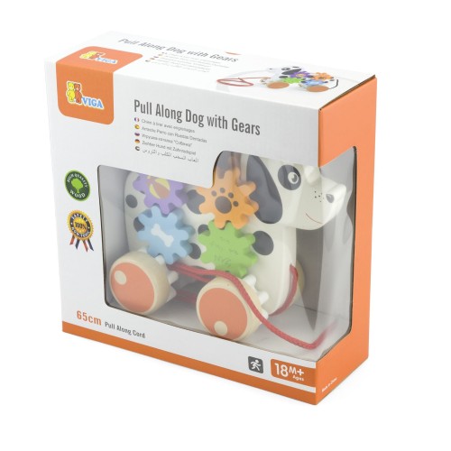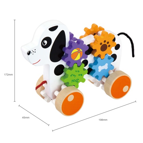 These two pull along animal with colourful gears on their bodies, with gears that will turn when the animal moves forward.