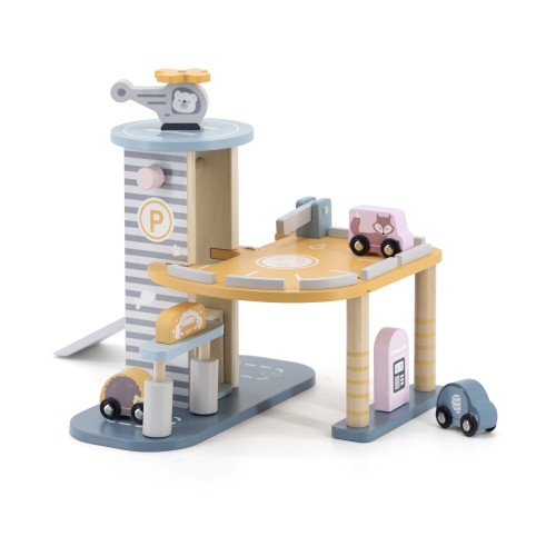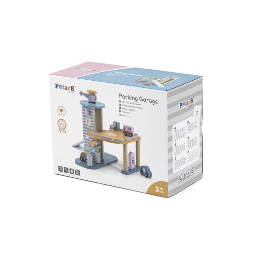 This PolarB parking garage includes gas station, car wash service and elevator, together with 3 cars & 1 helicopter.