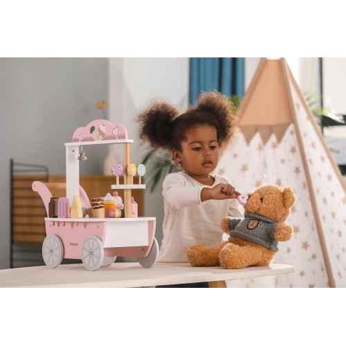 The pretend role play ice cream trolley allows children to experience the fun while playing, and also helps them to learn some basic knowledge of buying and selling.