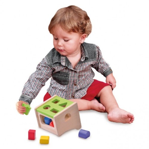 This Sorter box has a sloping base to enhances vision when children are playing, 4 basic geometric shapes allow children to learn about the shape matching and colours.
