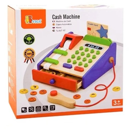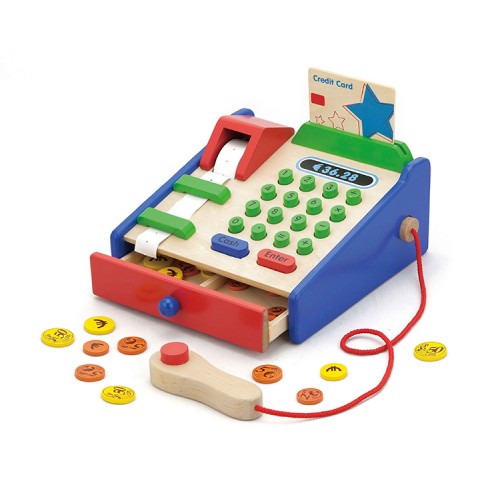 Featuring a credit card to 'swipe' for payment, a till roll for receipts, money drawer, scanner and wooden coins, this cash register is just like the real thing.