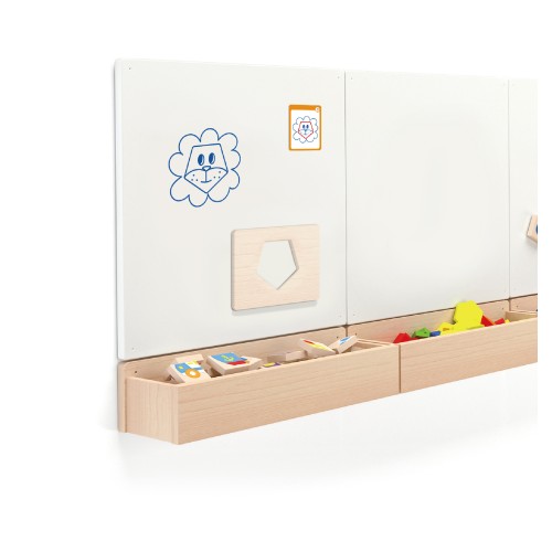A 12 piece set of magnetic stencils, designed to help children draw and recognise geometric shapes.