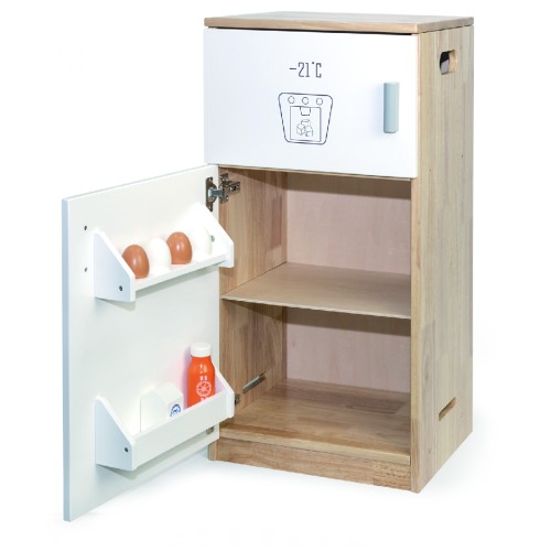 This is a classic and modern wooden play set, which is made of high quality of solid wood with compartment for Eggs and Milk.