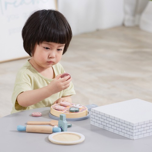 Your little chef can make a pizza to please any palate and then serve it up to their friends with this colourful wooden make a pizza set.