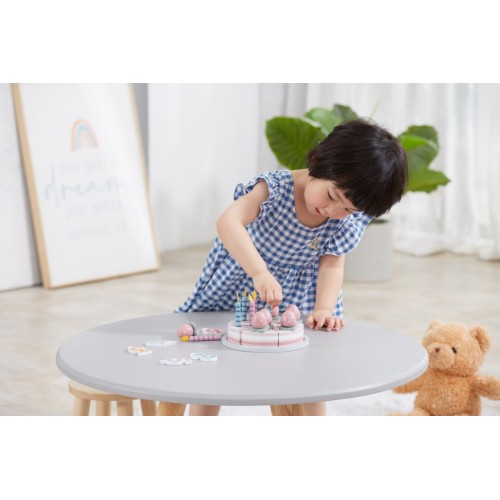 This delicious wooden cake set includes 6 cake slices, 5 number blocks, removable candles, strawberry toppings, a cake plate and a spatula. Ideal to encourage imagination, creativity, and hand-eye coordination through decorating the cake, and enhance social and language development by celebrating together with family and friends. An excellent addition to any afternoon tea set or pretend play kitchen! |